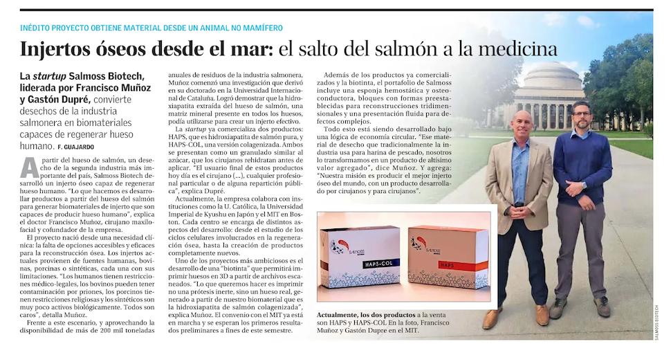 SALMOSS BIOTECH was born as a result of the invention of a new osteoconductive biomaterial in the context of Dr. Muñoz’s PhD program. This innovation opened the opportunity for productive and commercial development.